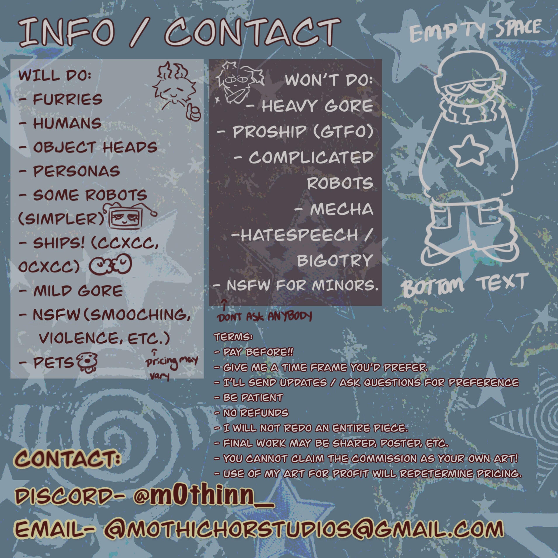 I am an art student taking a leave from my studies to focus on working irl and developing my online platform. Any support is super deeply appreciated! I mostly dabble in fandom / oc art.Fandoms: Dandys World, Danganronpa, Southpark, Homestuck, Undertale, Deltarune, NITW.